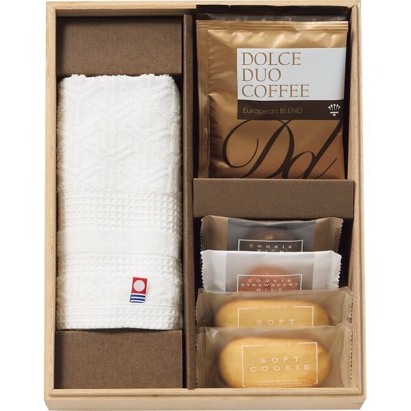 商品内容:●今治産ウォッシュタオル(約34×35cm・綿100%・日本製)1枚・ソフトクッキー×2・クッキー(いちごミルク×1・ココア×1)・ドリップコーヒー×2