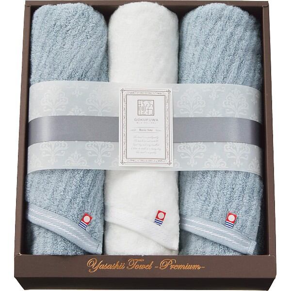 極ふわ やさしいたおる ベーシックライン フェイスタオル3枚セット ライトブルー YTPB-24450