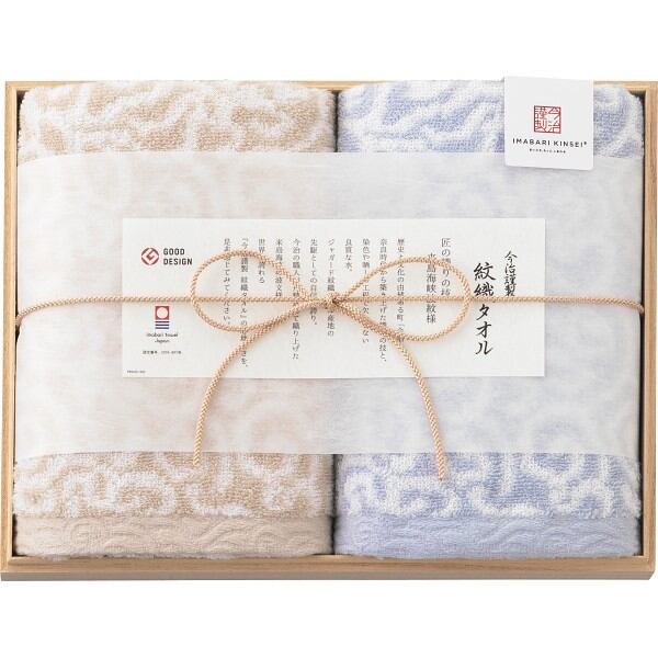 「今治謹製 紋織タオル」は木目も美しい木箱入りタオルです。箱を手に取った瞬間の木の温もりは感謝の気持ちをお伝えするタオルギフトに花を添えます。