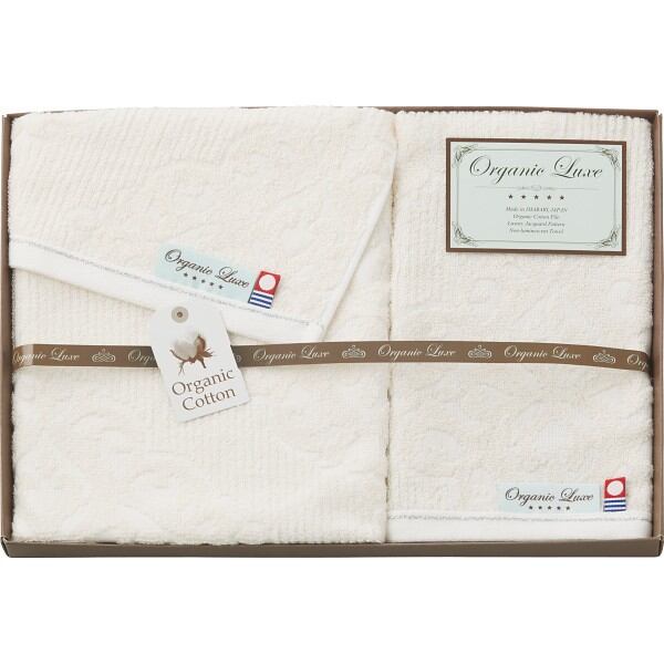人にも環境にもやさしいさを贈る、オーガニックコットンのタオル。パイル部分にオーガニックコットンを使用。優雅な文様のジャガード織が落ち着いた雰囲気を醸します。