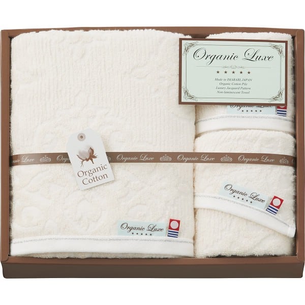 人にも環境にもやさしいさを贈る、オーガニックコットンのタオル。パイル部分にオーガニックコットンを使用。優雅な文様のジャガード織が落ち着いた雰囲気を醸します。