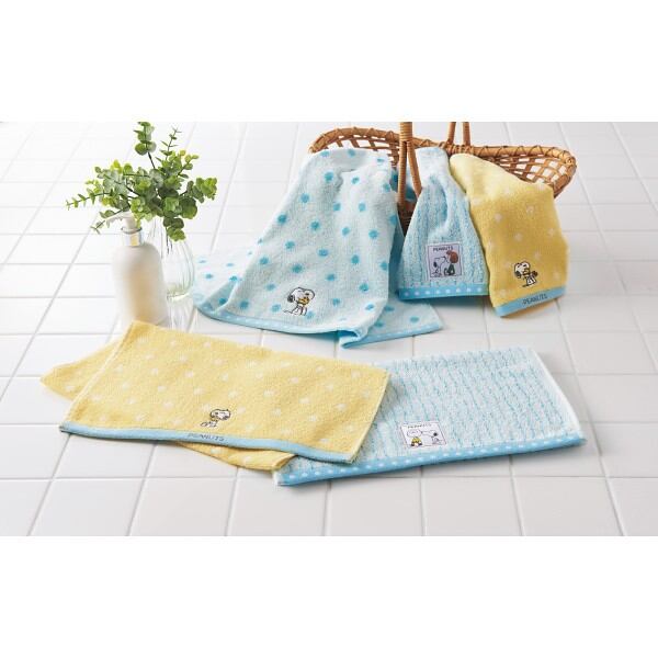 PEANUTSからハグをテーマに、スヌーピーが仲間に寄り添うシーンをモチーフにしました。 ハグするスヌーピーから優しさや思いやりが伝わるデザインです。 ドットとストライプのシンプルなパターンは子どもから大人まで使いやすく、内祝いにおすすめです。