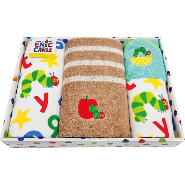 大胆な色使いで大人から子供まで幅広く愛されている絵本「はらぺこあおむし」の、鮮やかな色使いのタオルセットです。