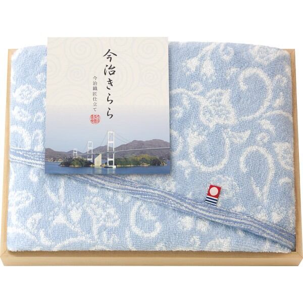 今治の自然を感じる色彩で丁寧に織り上げた情緒あふれる和更紗模様の今治タオル。美しい今治タオルを木箱に詰め合わせた丁寧な贈りものです。