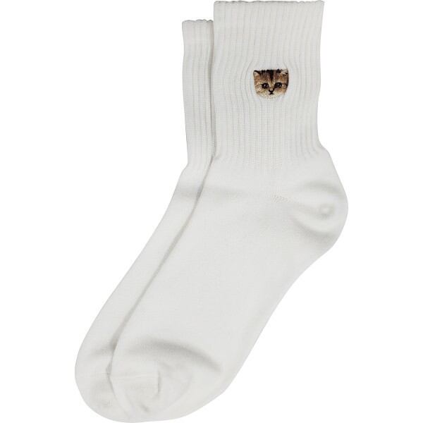 キュートなヌネットのフェイス刺繍が入ったミドル丈のアメリブソックス。どんなシーンにも合わせやすいシンプルなデザインなのでギフトにもおすすめです。