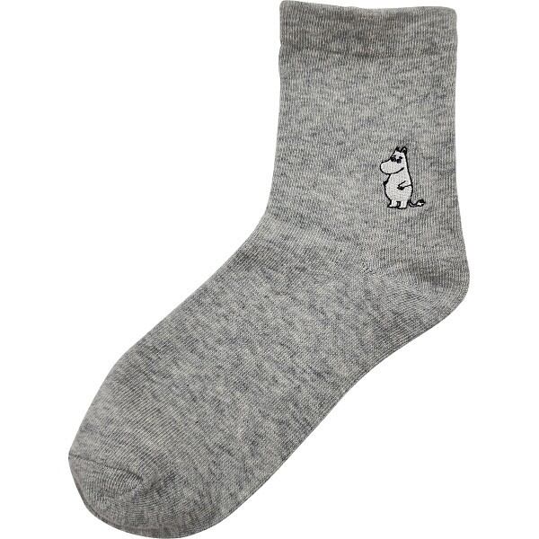 ムーミンの刺繍が入ったロークルー丈のソックス。履き口ゴムはゆったりタイプ。