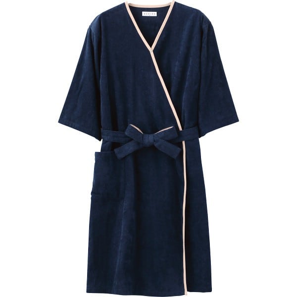 パイルに極細の糸を使用し、独自の技術によって極限までパイルを短く織り上げた、極薄のタオル素材です。さっと羽織れて、バスタオル1枚分の軽さ。薄く軽いため乾きが速く、毎日のお洗濯が楽々。素早く羽織れて、はだけにくいので赤ちゃんとの入浴後にも便利。前あきデザインで妊娠中から授乳期にも便利です。※日本アトピー協会の推薦品