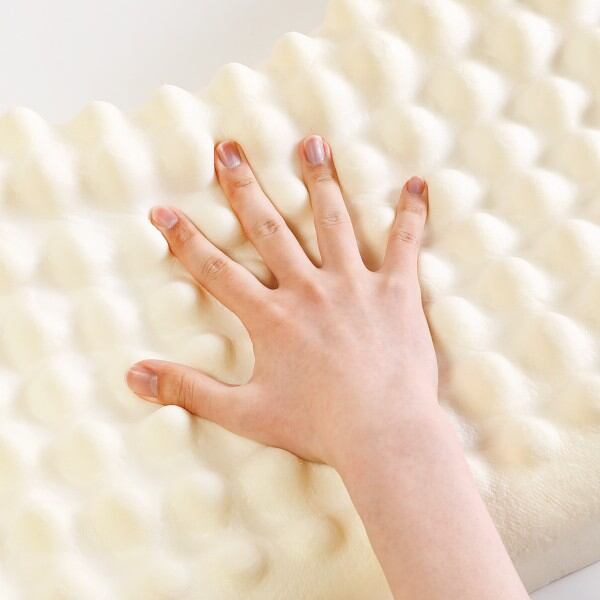低反発ウレタン素材で快適な入眠をサポート。優しい反発力が頭や首を支え、朝までぐっすり眠れます。カバーは通気性の良いニット生地を使用。点で支えることにより、体圧が分散され、快適な寝心地をサポート!