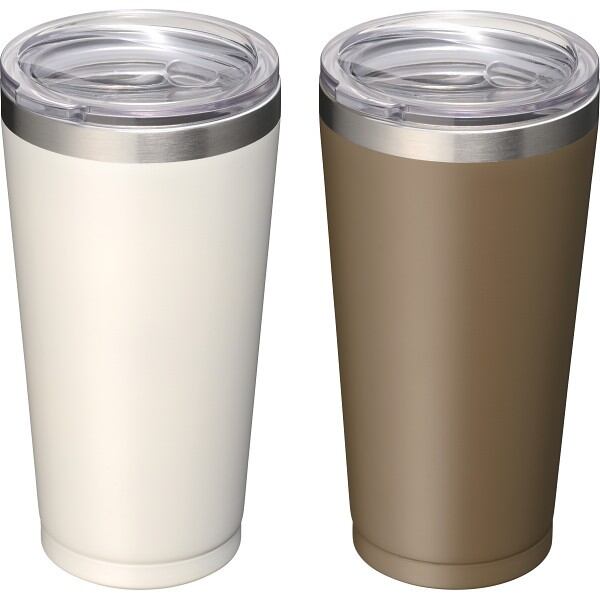落ち着いたマットなホワイトとブラウンのペアタンブラーです。外側は熱くなりにくく、氷を入れても結露しにくいステンレス製二重構造です。季節を問わず1年中活躍します。