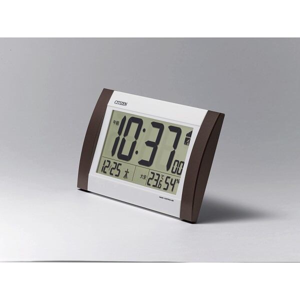 ●大きくて見やすい画面が特徴の掛置兼用電波デジタル、アラーム機能が付いており、好きな時刻に電子音でお知らせします。●白と茶のコンビネーションは、様々なインテリアとマッチします。