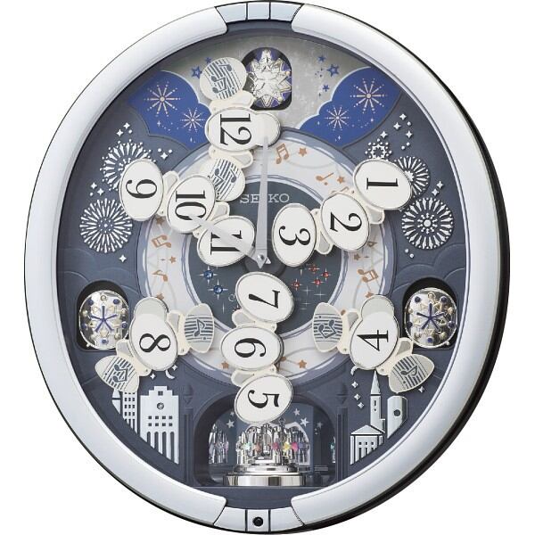 夜空に上がる花火をイメージしたからくり時計。チャイムの他18曲を3グループから選べます。