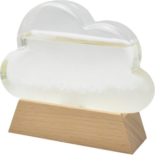 気象条件によって液体内の結晶の形が変化するストームグラス。雲をイメージした北欧テイストなかわいらしいデザインの、結晶のユニークな変化を楽しめる自然派オブジェです。