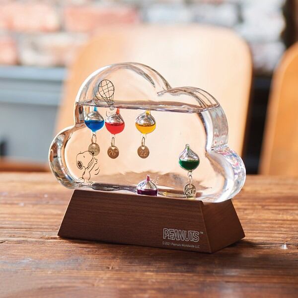 気球に見立てたガラス球がたくさんある中で、ウッドストックの乗った気球を見送るスヌーピー。仲のいい二人、でも気球はどこへ?