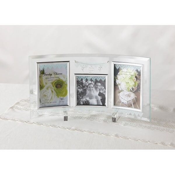 ■クリアのガラスにハート型のチャームが付き。ガラス面にシルバーカラーのレースをプリント。ブライダルにはもちろん、女性に人気のシリーズです。