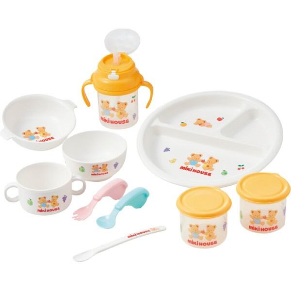 はじめての離乳食に便利なテーブルウェアセット(食器セット)です。離乳食の初期から自分で食べられるようになるまで長くお使いいただけます。