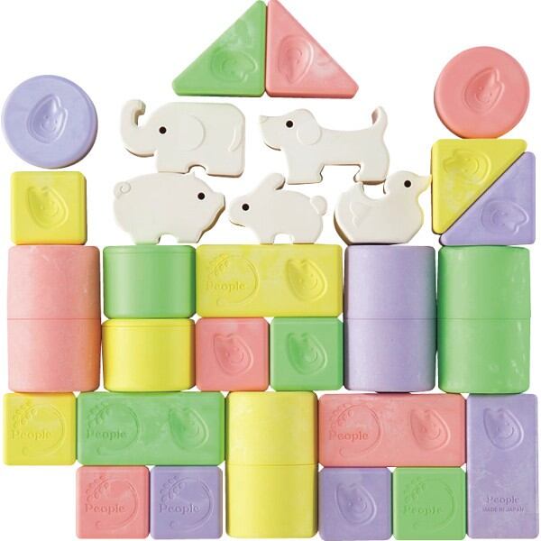 やわらか素材の「どうぶつ型つみき」が加わって、人気の「お米のつみき いろどり」がパワーアップ!白米色のどうぶつつみきは小さな手でも持ちやすいやわらか素材。