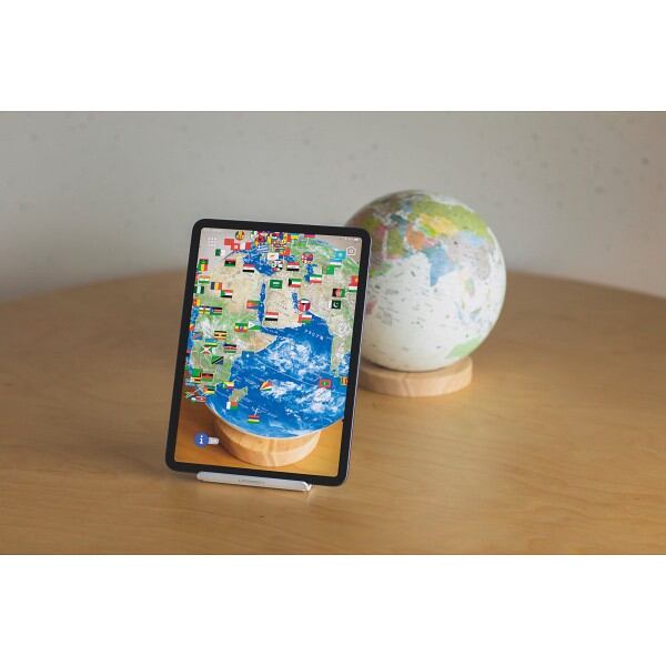 地球の今が見えるAR地球儀「ほぼ日のアースボール」に、あたらしい仲間が加わりました。「旅」を意味する新本体は、国名と国境の記載があり、アプリを使わなくてもたのしむことができます。精緻な世界地図や、世界のさまざまなモチーフを表現した小さなイラストは、こどもから大人まで、知的な探究心を刺激します。国々を美しくカラフルに色分けしたデザインは、見やすいだけでなく、インテリアとしても最適です。もちろんアプリをかざせば、さまざまな地球や世界の情報が飛び出してきます。
