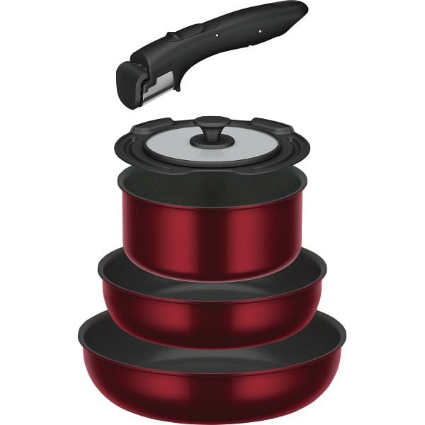 人気の深型フライパン22cmと26cm、、煮込み料理に便利な18cm鍋、取っ手や鍋専用フタが一緒になったベーシックなセット。フライパンは、硬質フィラーを配合した、耐久性コーティング。耐摩耗性の高さと焦げつきにくさが特長です。また、取っ手はワンタッチで取り付け・取り外しOK。