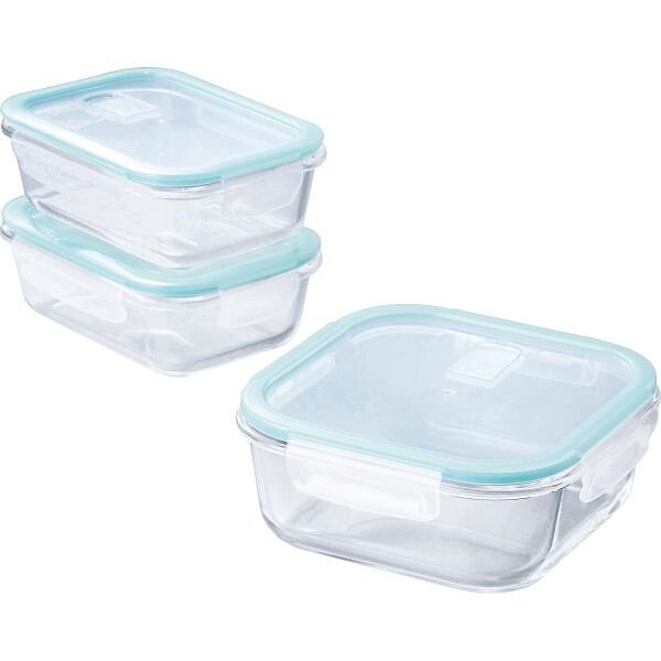 商品内容:●角型640ml(約17.6×13.1×6cm・640ml)×2、角型1.2l(約18.2×18.2×7.2cm・1.2l)×1●オーブンレンジ・電子レンジ可(本体のみ)
