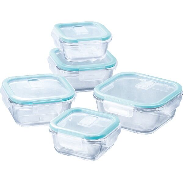 商品内容:●角型320ml(約11.7×11.7×5.9cm・320ml)×2、角型520ml(約13.9×13.9×6.2cm・520ml)×2、角型800ml(約15.4×15.4×6.9cm・800ml)×1●オーブンレンジ・電子レンジ可(本体のみ)