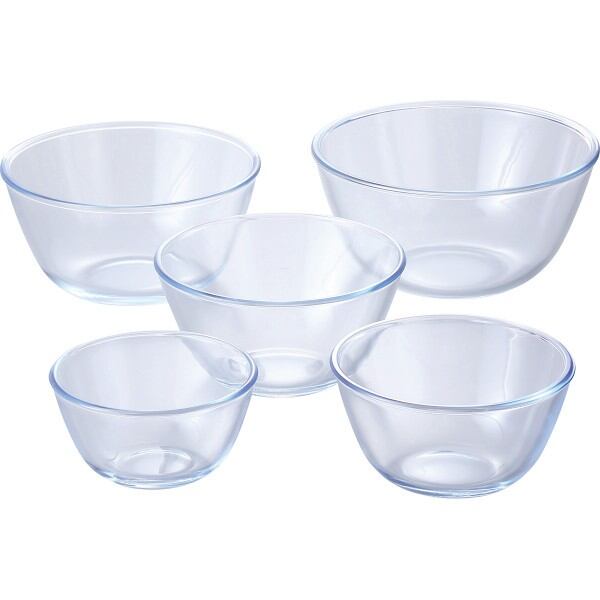 商品内容:●ボウル500ml(約12.8φ×7cm・500ml)・ボウル800ml(約15φ×8.1cm・800ml)・ボウル1l(約16.9φ×8.8cm・1l)・ボウル1.5l(約19φ×9.5cm・1.5l)・ボウル2l(約20.9φ×10.3cm・2l)×各1