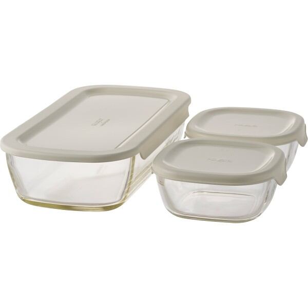 商品内容:●正方形S(約11.1×10.7×4.7cm・250ml)×2、長方形S(約23.8×12.5×5.6cm・900ml)×1●電子レンジ可●オーブンレンジ可(ガラス本体のみ)