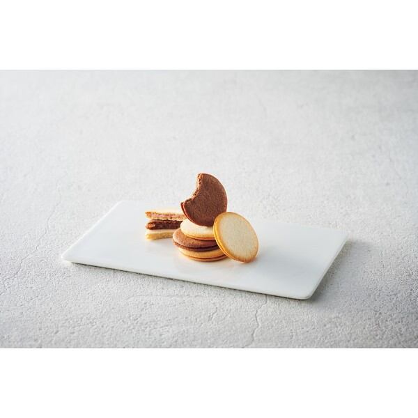 サクサク食感のプレーン生地とココア生地で、ホワイトチョコ、ミルクチョコ、ストロベリーチョコをサンドした3種類のラングドシャの詰め合わせ。
