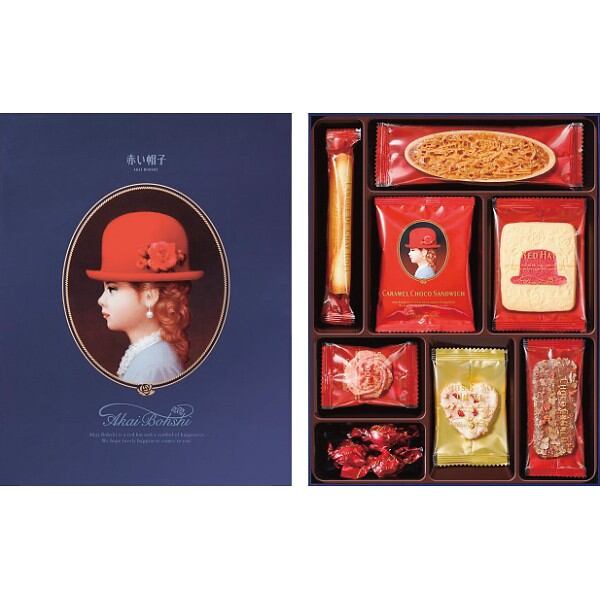 商品内容:●ホワイトボール(アップル風味)×5、チョコクランチ×3、ナッツベリーハート・バニラアーモンド・ラングドシャロール・ストロベリークッキー・キャラメルショコラサンド・レッドハット×各2(計8種20個入)