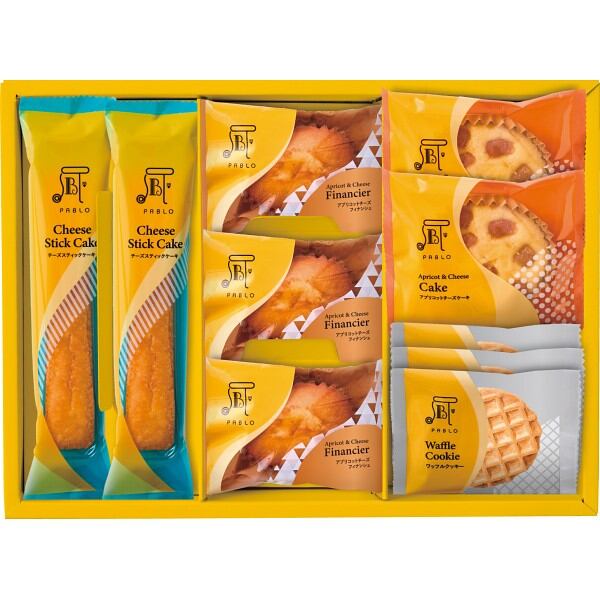 商品内容:●アプリコットチーズフィナンシェ・ワッフルクッキー×各3、アプリコットチーズケーキ・チーズスティックケーキ×各2