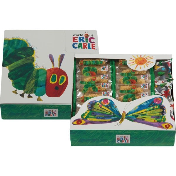 絵本「はらぺこあおむし」をモチーフにした「ひねり揚げ」のギフトボックスです、絵本をイメージしたポップアップなパッケージです。
