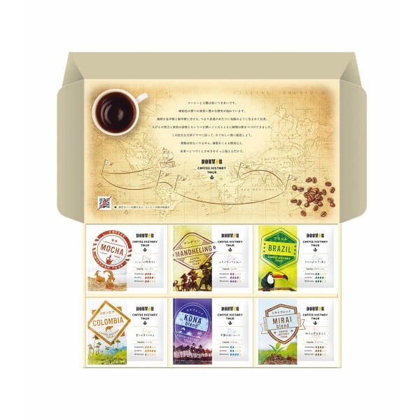 産地ごとに個性を感じられるストレート豆4種とブレンド2種の組み合わせが楽しめる、時空を超えた旅するコーヒーヒストリーツアーギフトです。