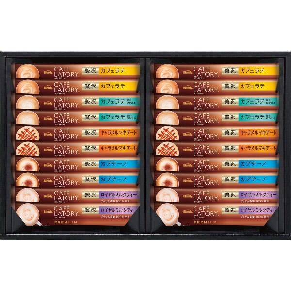 商品内容:●贅沢カフェラテ18g×4・贅沢カプチーノ18g×4・贅沢キャラメルマキアート18g×4・贅沢カフェラテ甘さひかえめ18g×4・贅沢ロイヤルミルクティー19g×4