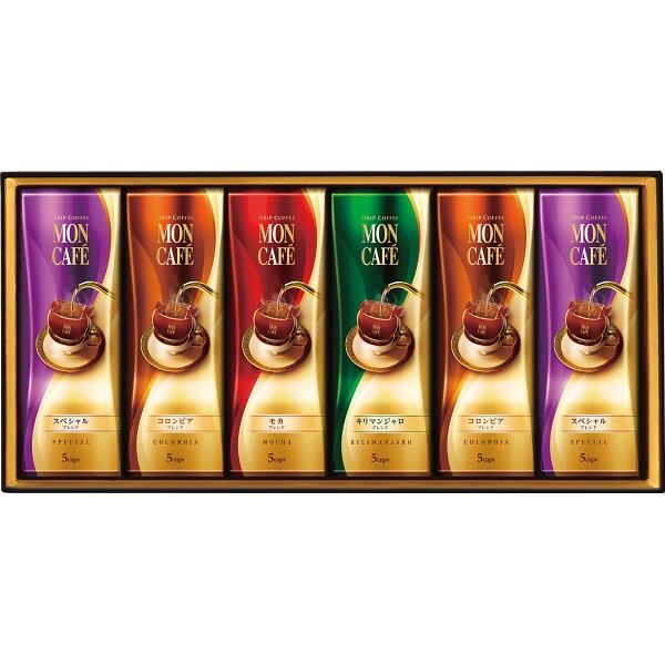 贈るなら「香り」も贅沢なドリップコーヒー モンカフェ。味わいを極めたモンカフェの、多彩なブレンドがお楽しみいただけるギフトです。個性豊かなオリジナルブレンドを豊富にラインアップし、あらゆるシーンに挽きたての美味しさをお届けします。