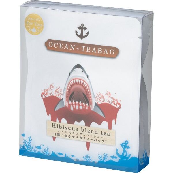 襲い掛かるサメの表情と血のような赤い紅茶が楽しめます。熱湯を入れたカップに、静かにティーバッグを設置してください。印刷した上半身部分がカップのふちに綺麗に引っかかります。水没しないようにお気を付けください。このホオジロザメは人食いです。血のような真っ赤なハーブティーが出ます。