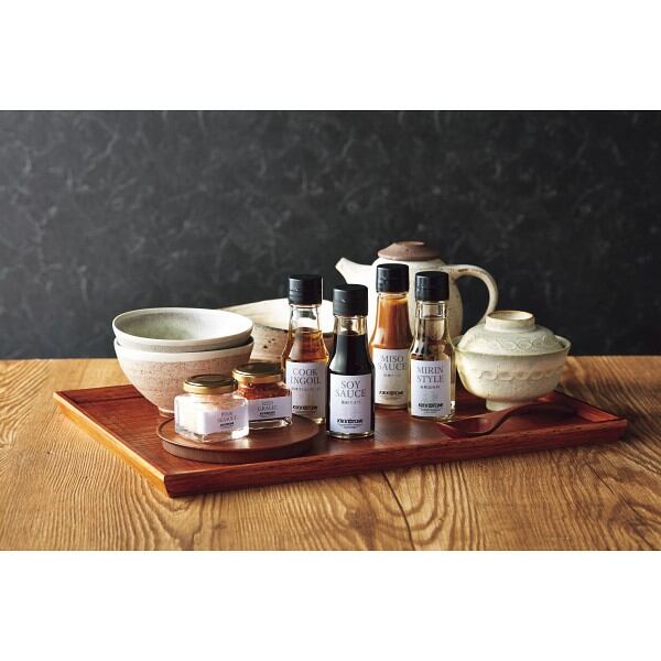 商品内容:●クッキングオイル60g・味噌たれ70ml・たまり醤油70ml・唐辛子ガーリック20g・ピンク岩塩45g×各1