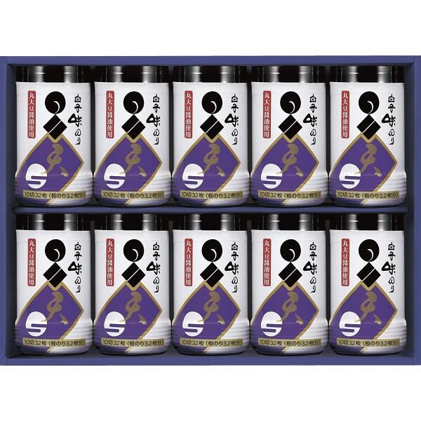 商品内容:●味のり10切32枚×10 商品外形:化粧箱入 宅配状態:常温 丸大豆醤油を使った、使いやすい卓上ボトル入りの味のりの詰合せ