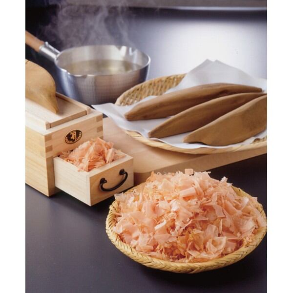 かつお節本来の香りとうま味の素晴らしさはもちろん、血合いを取り除くことにより、目でも味わいを楽しむと言われる日本料理を、より一層引き立てる美しさが特長です。