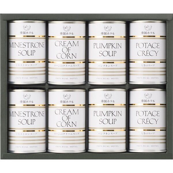 帝国ホテルの味をご家庭へお届け!食材の旨味を最大限に引き出したこだわりのスープ4種類セットです。