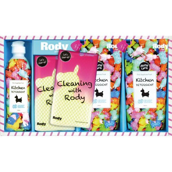 キッチンをカラフルに彩るロディのキッチン洗剤セット 置いておくだけで楽しく元気な気持ちにさせてくれそうなカラフルでキュートなデザインの食器洗剤と、キッチン用スポンジの詰め合わせセットです。食器洗剤の詰替え用もご用意させていただきました。