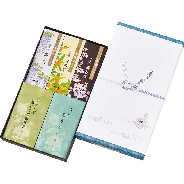 商品内容:●香結び備長炭・金木犀・藤花(約35g)・火がつきやすいお墓参り用お線香(4把)・色芯ローソク(約50g)×各1箱