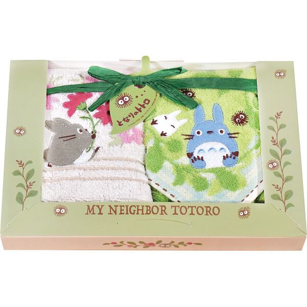 となりのトトロのフェイスタオル1枚、ウォッシュタオル2枚入りのタオルギフトです。かわいらしいデザインのアップリケ刺繍入りのジャガード織りタオルギフトです。開閉式のギフトボックスとなっております。