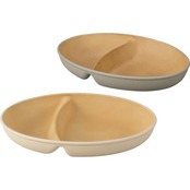 軽くて割れにくく、抗菌仕様なのでアウトドーア—で大活躍。地球上の大地や植物など自然物をイメージしたアースカラーよりシンボリックな2色をセレクトして白木調の色と塗分けました。お洒落な使用シーンをお楽しみ頂けます。食洗機・電子レンジ対応なのでデイリーユースでも大活躍してくれます。ワンプレートなので後片づけがラクラクOKです。やや背高の仕切り付なので異なるソースが混じり合うことなく美味しく頂けます。