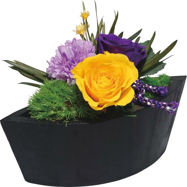 商品内容:●プリザーブド(バラ、コケ、リーフ)、フェイクフラワー(リーフ、マム)、スターフラワー、リボン、組ひも●花器(桐)●お手入れのしおり付