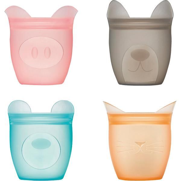 かわいらしい動物のモチーフを採用したベビースナックのセットです。容器の開口部は子どもが握っても中身が飛び出しにくい設計になっています。