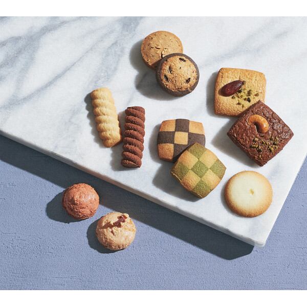 商品内容:●コルベイユ4種×各2、アーモンドクッキー×2、カシューナッツクッキー×2、レモンクッキー×4、アメリカンリングクッキー×3、ココア&プレーンクッキー×2、抹茶&プレーンクッキー×2、ヘーゼルナッツクッキー×4、ツイストクッキー2種×9、アーモンドマカロン×2、ストロベリーマカロン×2(計40個)