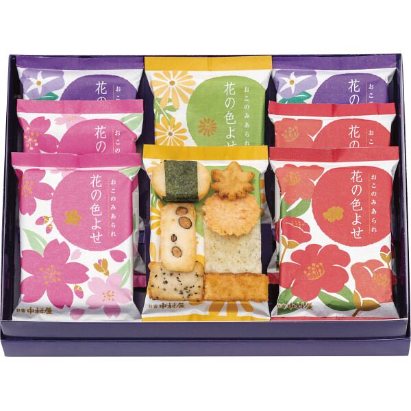 海苔、黒豆、チーズなどを使った個性豊かな19種類のあられを、1袋に7種ずつ組合わせて入れた食べきりサイズのあられ詰合わせです。大切な贈り物やお茶請け等、幅広い用途でお使いいただけます。個包装パッケージに春・夏・秋・冬の4種の花をあしらい、華やかで季節感あふれる詰合わせです。