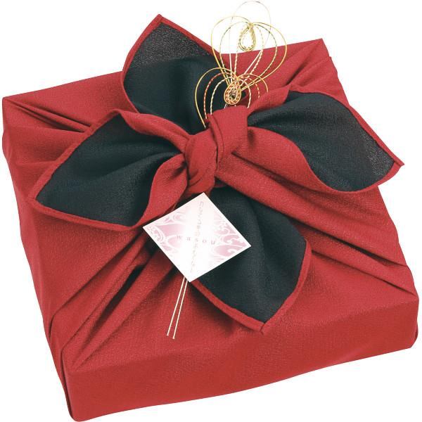 花びらのような結び目とハートの水引で可愛らしく仕上げた風呂敷包みに、老舗鰹節屋自慢の削り節とだしパック、手軽に食べれるお茶漬けを詰め合わせました。