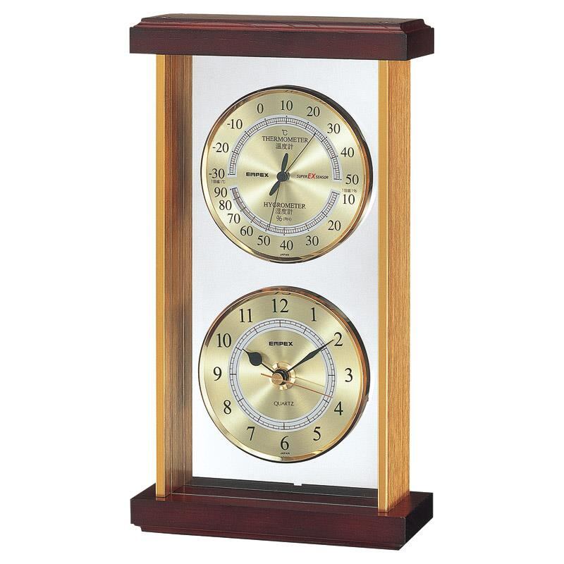 クリスタルな美しさ。ゴールド仕上げのアルミ枠の中に計器が浮かんで見えます。○縦・横・置き掛け兼用タイプ○スーパーEXセンサ採用(精度:温度±1℃ 湿度±2%)