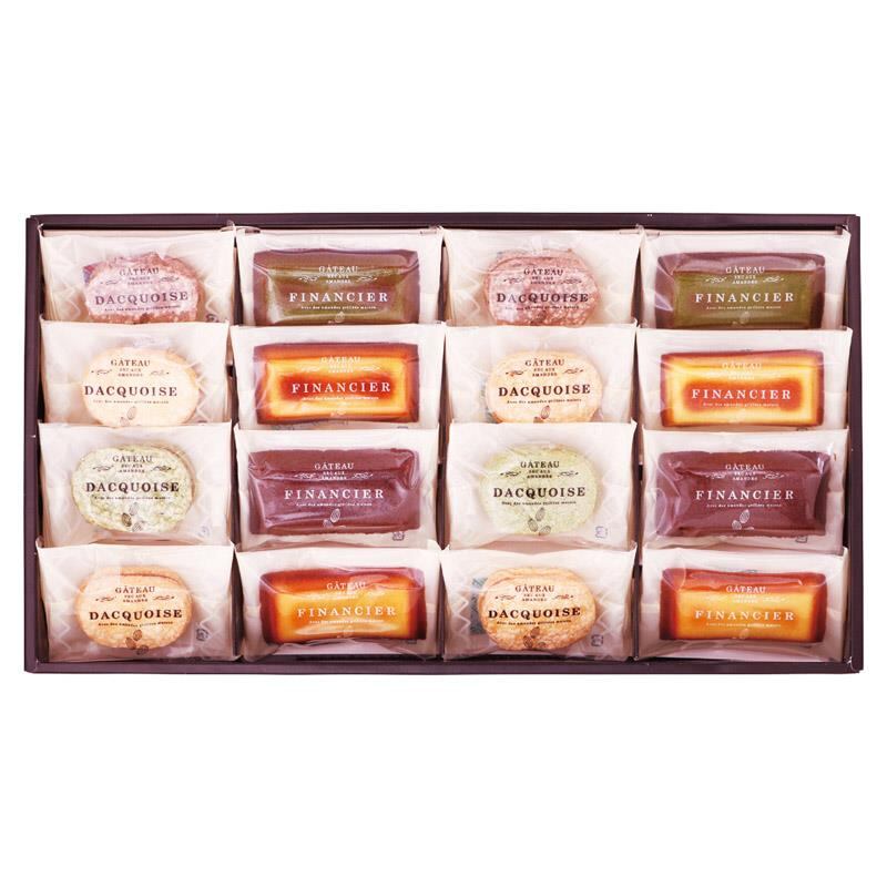 商品内容:ダックワーズ(プラリネ)・フィナンシェ(プレーン)×各4、ダックワーズ(ショコラ・抹茶)・フィナンシェ(ショコラ・抹茶)×各2