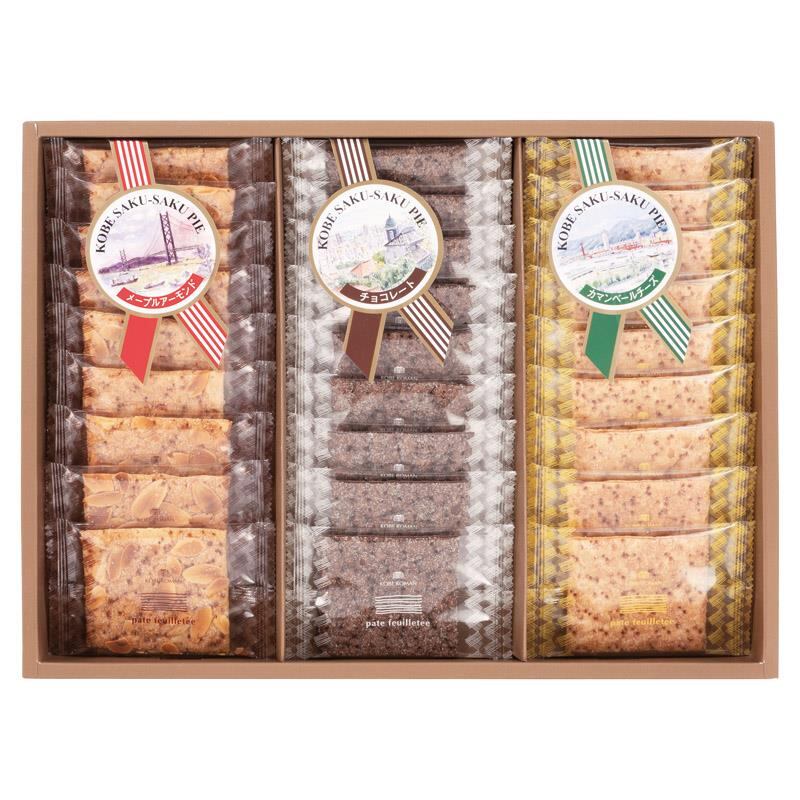 商品内容:メープルアーモンドパイ・チョコレートパイ・カマンベールチーズパイ×各9